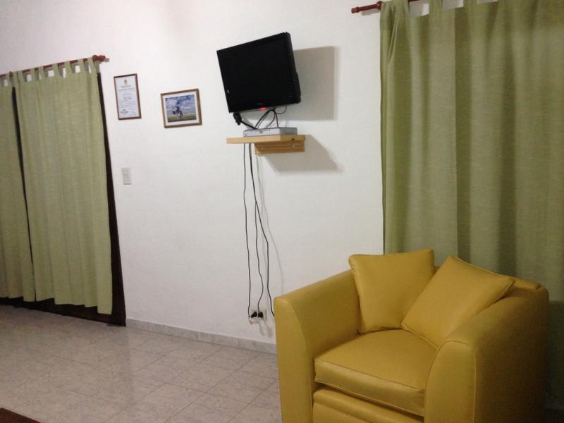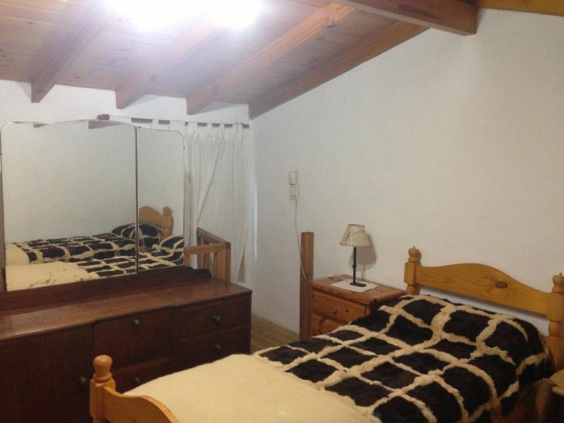 Cabaña de dos dormitorios Capacidad maxima 5 personas Ideal para matrimonio y hasta 3 hijos ó dos matrimonios Cuenta con dos plantas Planta baja: Living cocina comedor muy amplio, dormitorio matrimonial, baño completo con ducha. Planta alta: dormitorio con tres camas de una plaza. La cabaña tiene adosada a la misma la cochera techada con su parrilla bajo techo y mesa y sillas de Jardin La cabaña cuenta con reposteras de uso exclusivo de la cabaña.